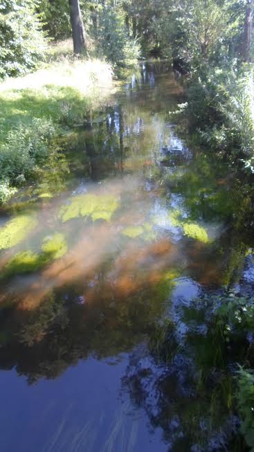Rzeka Rega. Blask słoneczny jest tak intensywny (+30), że nawet pospolite dno mieni się kolorami jak pawi ogon.: