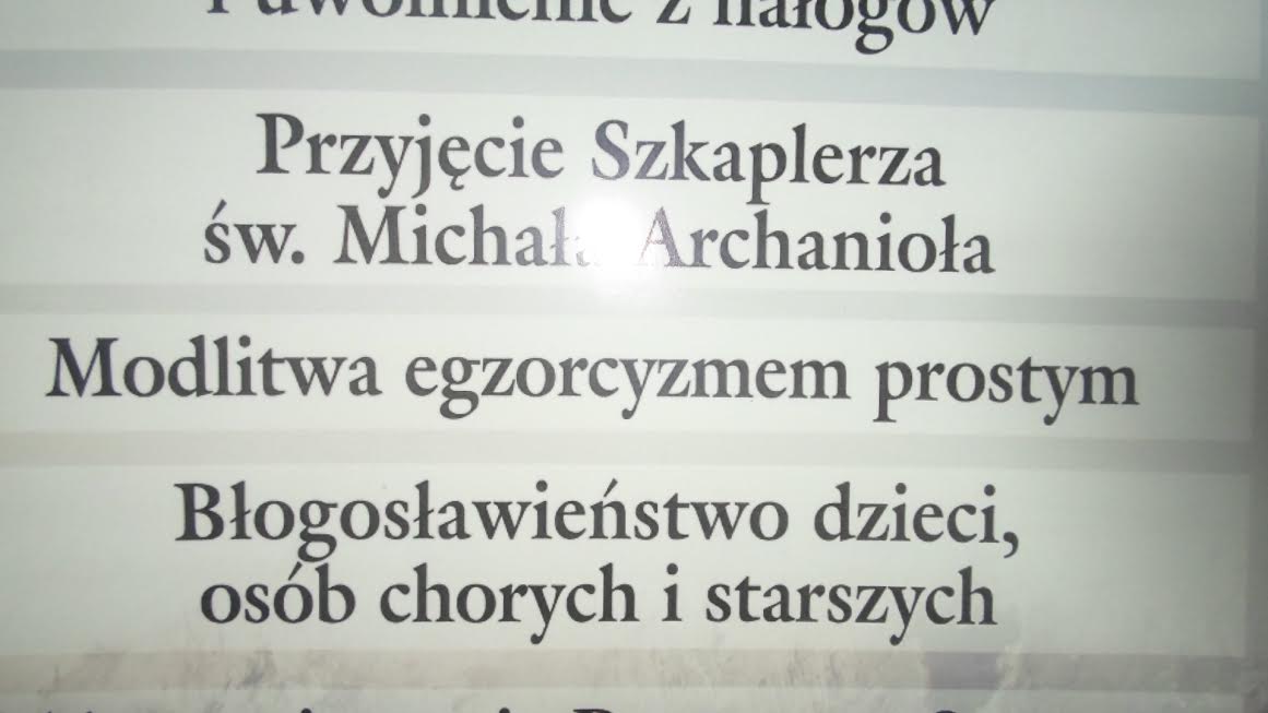 Kościół w Resku. Modlitewne menu. Czy naprawdę są tak naiwni, iż myślą, że w dzisiejszych czasach „egzorcyzm prosty” wystarcza? Może nie czytali mojego tekstu o szatanie, w którym biję na alarm?: