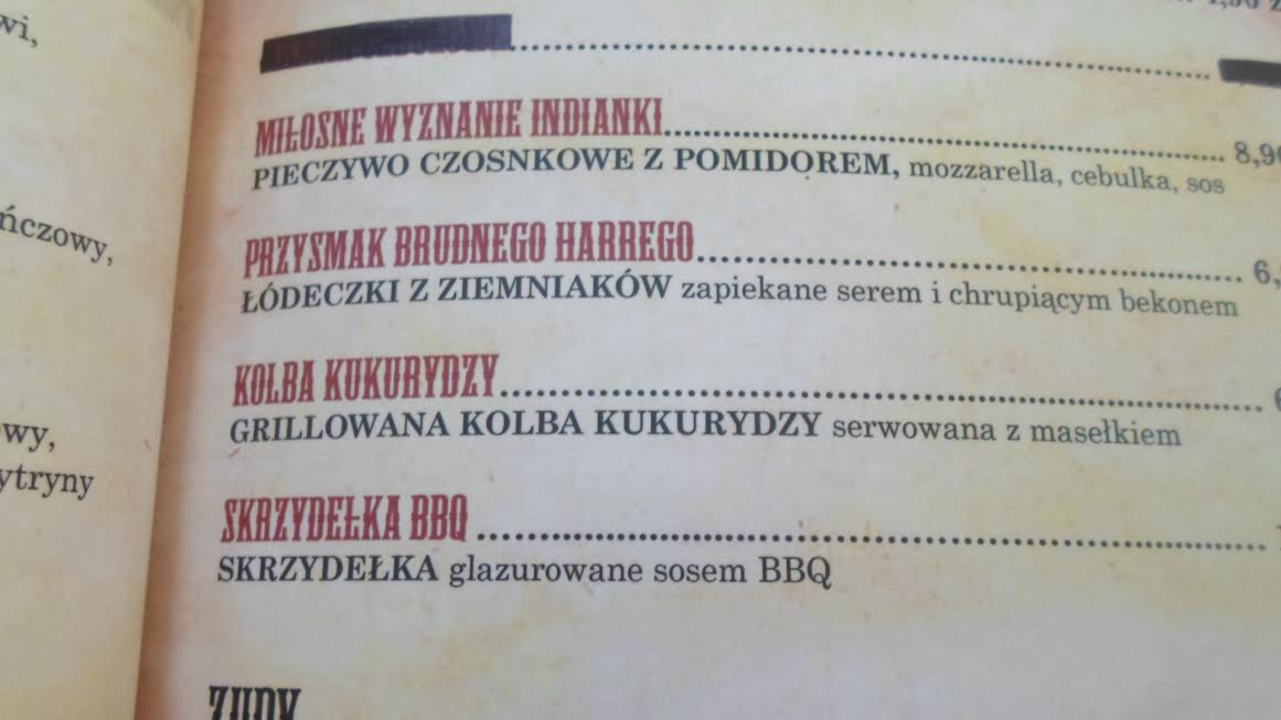 Menu restauracji stylizowanej na saloon.: