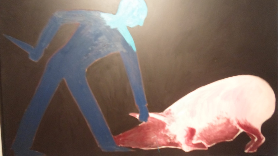 Natknąłem się na nią w krakowskim Muzeum Narodowym. To praca Jarosława Modzelewskiego „Zabijanie świni”. Obraz przekonujący, namalowany starannie, z wielką dbałością o detale, kolorystycznie wycieniowany. Tylko, gdzie ta prowokacja? Oczywiście w dacie. Bo obraz pochodzi z roku 1983, kiedy to mięso było na kartki, a i to go ciągle brakowało. Więc namalować taki obraz znaczyło – pokazać go głodnym mieszkańcom miast i wsi, wkurzyć ich, a w konsekwencji wyciągnąć na ulice i napuścić na nich ZOMO. Oto do czego prowadziło pokazywanie świni na płótnie!