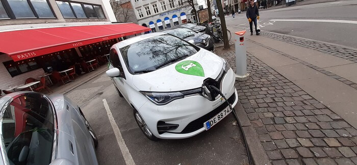 Z trasy. Kopenhaga, obrazki. Przyuważyłem samochód taki jak mój. No, prawie taki. Ten był na prąd.:
