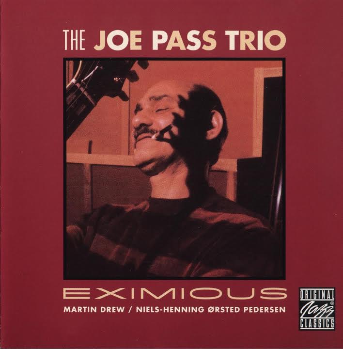 Eximious 11 grudnia 2015JazzariumWiesław Kot The Joe Pass Trio „Eximious” 1982. Tylko jeden kawałek Pass gra solo. Poza tym napędza go intensywny bas i perkusja. Z recenzji: „Together, these musicians make the wondrous seem effortless”. Pamięta się “Night And Day”, “Speak Softly”.:
