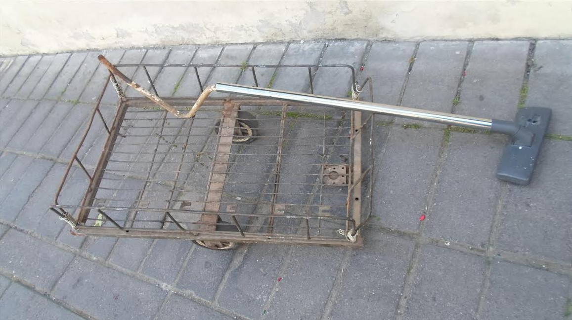 I spontaniczna instalacja chodnikowa autorstwa anonimowego artysty, który wprawdzie żyje ze zbierania złomu, ale ma niezaprzeczalny talent.: