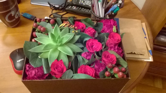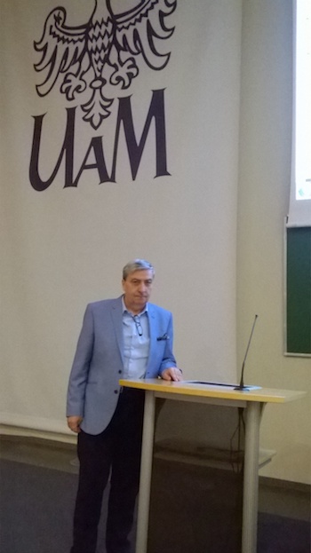 Gniezno. Godzina ze studentami Instytutu Europejskiego, tamtejszej filii UAM z cyklu „Spotkanie z mistrzem”. Tytuł pozwalam sobie uznać za dobroduszną kpinę. Dostałem piękną kompozytnę kwietną.: