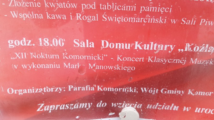 Flyin’ 26 października 2019Co niesie dzieńWiesław Kot Jesień staje się powoli nieodwołalna.: Ale sezon trwa, co widać na tablicy z ogłoszeniami sołeckimi. W ramach Święta Niepodległości zostanie zaprezentowany „XII Nokturn Komornicki”. Nie rozumiem, jak mogłem przegapić poprzednich jedenaście?!: