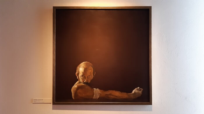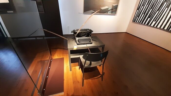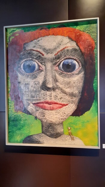 Z trasy. Jeszcze Bydgoszcz i Muzeum. Okruszyny. Oczywiście Kantor (oczywiście pod parasolem!), Linke, Krasiński ze słynną niebieską kreską, moja ulubiona maszyna do pisania z kosą (wizualizacja pojęcia „deadline”). Także malarskie odwzorowanie szczepienia na COVID i obraz wykluczenia komunikacyjnego.: