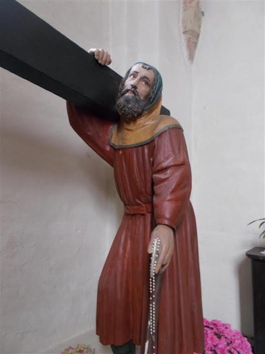 W jednym z kościołów na Warmii spostrzegam Szymona Cyrenejczyka. Jak wiadomo, Szymon wracał z pola, zmęczony całodziennym tyraniem. I wtedy żołnierze rzymscy zmusili go, by pomógł nieść krzyż Jezusowi, który już nie dawał rady. Szymon nie miał wyboru. Pomógł, choć niechętnie.: