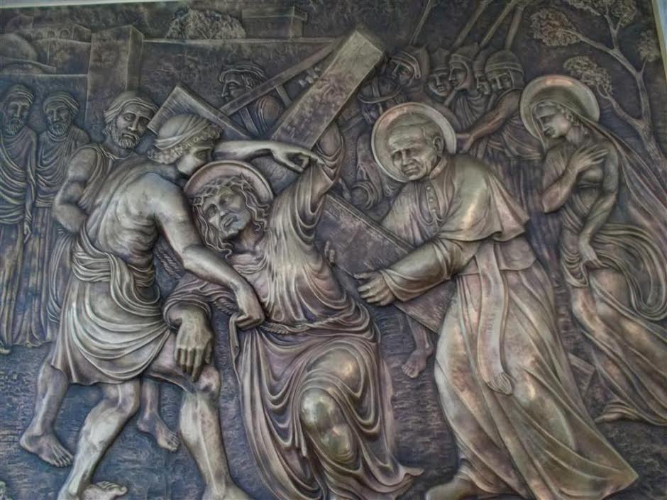 Jakże inaczej ta scena wygląda na drodze krzyżowej we wiadomym kościele w Toruniu. Tu krzyż pomaga nieść nie jakiś tam Szymon, lecz nasz umiłowany Ojciec Święty. Czyni to na ochotnika i z radością. Oto jak różne można mieć podejście do zajęć po godzinach.: