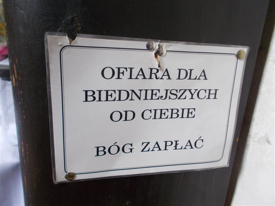 W jednym z kościołów na Warmii wrzuciłem datek do skarbonki. Mam nadzieję, że – zgodnie z zapewnieniem – nie trafi on do kieszeni duchowieństwa.: