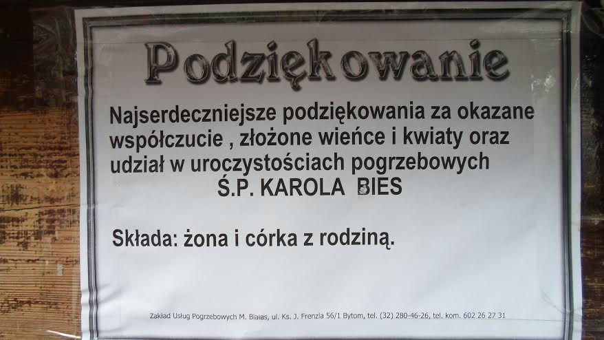 W Katowicach miły zwyczaj – klepsydra zwrotna. Nie tylko, że „odszedł najukochańszy…”, ale również, że miło było, iż ktoś się na pogrzeb pofatygował.