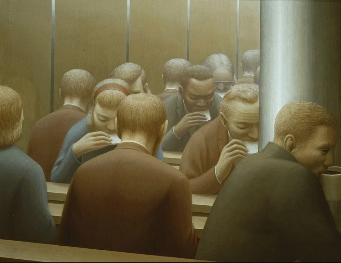 TheArtStory: „Niepokojące i urzekające obrazy George’a Tookera podejmowały największe tematy sztuki: pożądanie, śmierć, religię i żałobę. Jako artysta queer pracujący w latach 50. Tooker sprzeciwiał się ustalonemu status quo zarówno w swoim życiu, jak i w sztuce, a jego prace skupiały się przede wszystkim na krytyce izolacji i niezadowolenia, powszechnych w coraz bardziej kapitalistycznym i biurokratycznym świecie. Jego prace łączą cechy surrealistycznych krajobrazów snów, komentarzy politycznych i renesansowych technik malarskich, aby tworzyć niepokojące, ale piękne obrazy codziennych ludzkich zmagań”.