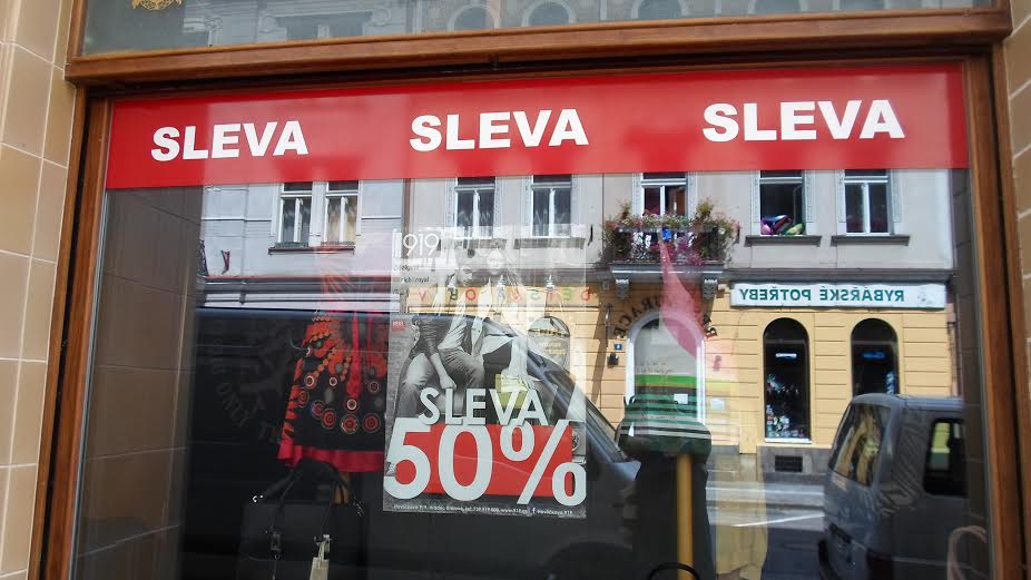 Najpopularniejszych słowem Czechach jest „sleva”. Powielają je niezliczone wystawy sklepowe, reklamy, plakaty, ogłoszenia. O ile się orientujemy, ma to coś wspólnego z wyprzedażą, obniżką, końcówką serii. Dorota twierdzi, że ichnia „sleva” to nasza „zlewka”, czyli resztki. Ja początkowo myślałem, że „Sleva, sleva, sleva” to czeska wersja tekstu: „Słowa, słowa, słowa…” z „Hamleta”. Można odnieść wrażenie, że Czechy stanęły na krawędzi Wielkiej Wyprzedaży Narodowej: