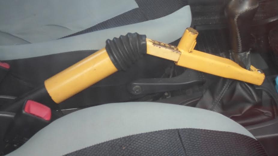 O tym, że tradycje rozbójnicze są w tej okolicy kontynuowane, przekonałem się na miejscowym parkingu, gdy zerknąłem do wnętrza samochodu zaparkowanego obok mojego. Miejscowi muszą coś wiedzieć o współczesnych Rumcajsach, skoro instalują taką oto blokadę skrzyni biegów: