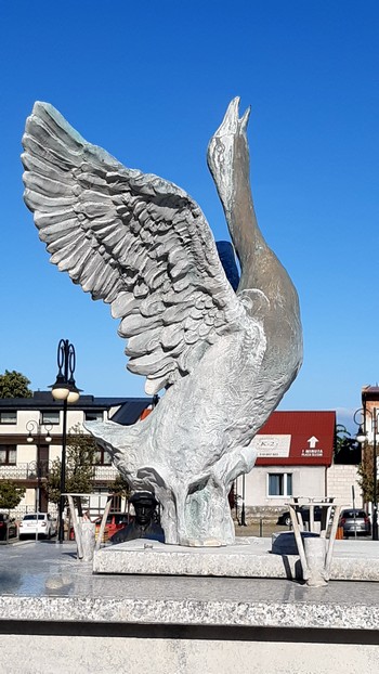 Ślesin. Ten sam gęsiarz, ta sama gęś na fontannie (teraz oczywiście nieczynnej).: