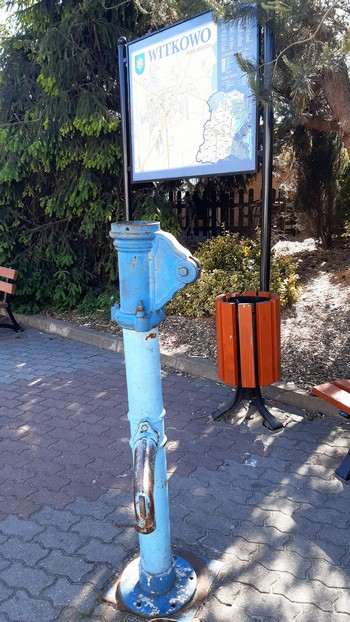 Jeszcze z „ostatniej drogi”. Witobel. Jak miło spojrzeć na tę samą nieczynną studnię. Na nowy repertuar w bibliotece. Niestety, zaprzyjaźnienie się z pięknem już nieaktualne – zakład w demontażu.: