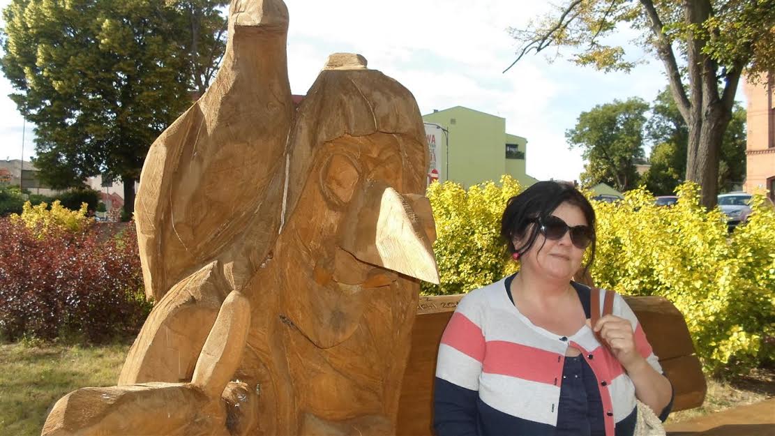 W przytulnym parku rzeźba czarownicy (Dorota z prawej).: