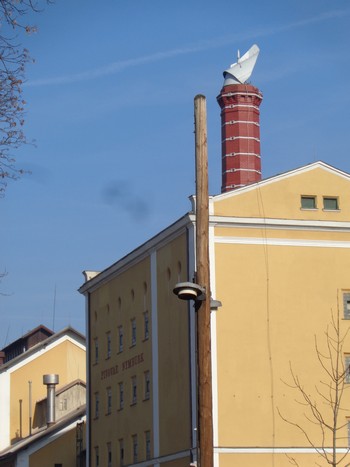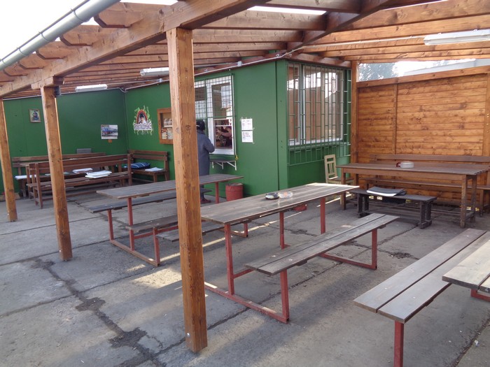 W Nymburku piwiarnia przy historycznym browarze pusta (na zewnątrz ok. 0 stopni), ale można „dokonać zakupu”.: