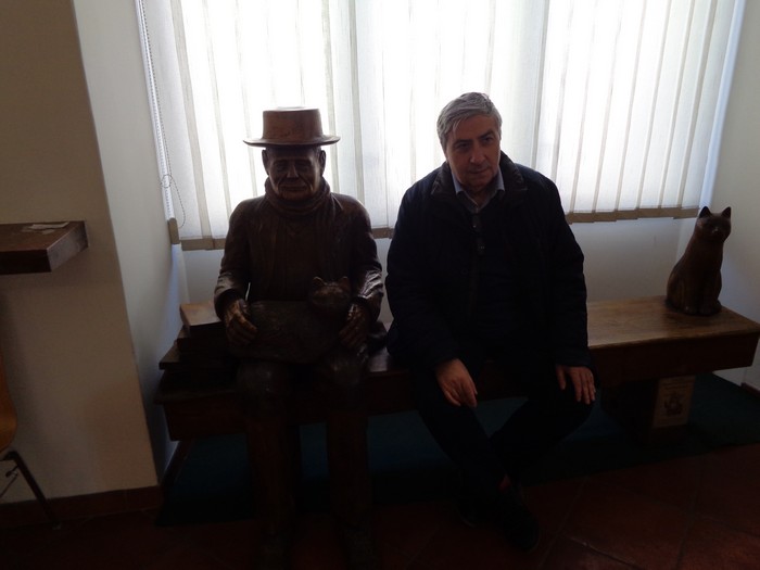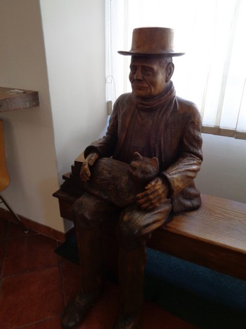 A biednego Hrabala (z kotem, a nawet dwoma) przenieśli na zimę z rynku do Urzędu Miejskiego.: