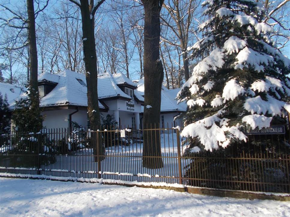W kwestii noclegów, które rezerwujemy przez Internet trafiają się nam dziwaczne przypadki (ostatnio popegeerowski hotel robotniczy z pomnikiem krowy), ale tym razem mieliśmy „złoty strzał”. Willa-pensjonat w Podkowie Leśnej, przy ustronnej uliczce. Cała w śniegu, jak z bajki. Przy -10. :