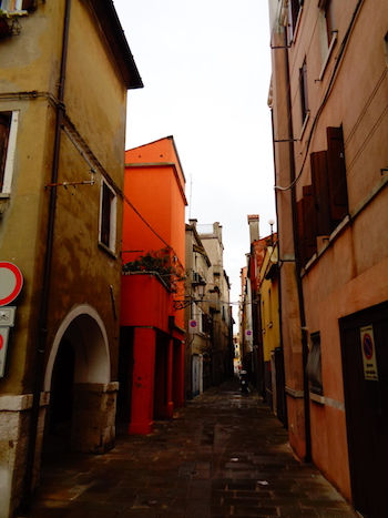 Treviso. Przewodniki piszą, że starówka to „typowo włoska plątanina uroczych uliczek”. Faktycznie. Z tym, że tu od pewnego czasu sporo pada i Treviso wygląda jak z lekka podmywane.: