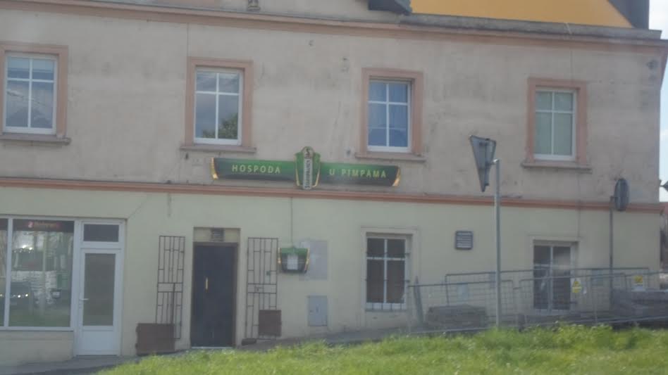 Nazwy lokali też wydają się tradycyjne. Pstryknięta z samochodu „Gospoda u Pimpama”.:
