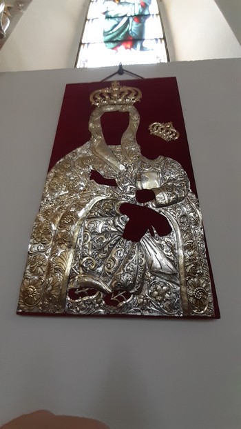 W piątek celem przewietrzenia. Opalenica. Pomnik produkowanego tam przed wojną motorka „Lech”. Kościół jakiś widmowy. Ołtarz bez obrazu, „sukienka” Matki Boskiej bez właścicielki. I ta przestroga w gablocie. Na szczęście do sierpnia jeszcze daleko.: