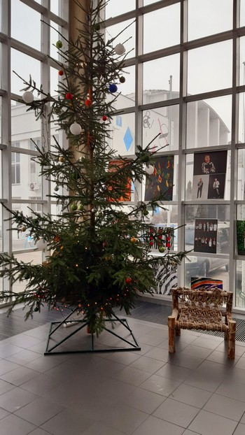 Christmas już także na Alma Mater. Choinkę można podziwiać z ekologicznego fotela.: