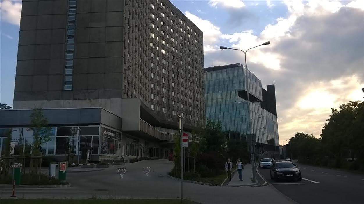 Nieopodal były hotel „Polonez” (z lewej), niegdyś najnowocześniejszy budynek Poznania i siedziba władz wojewódzkich, najnowocześniejsza obecnie. Hic transit gloria mundi.: