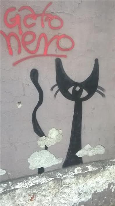 I nowe graffiti. Dawno nie widziałem tak smukłego kota. Zwłaszcza w lustrze.: