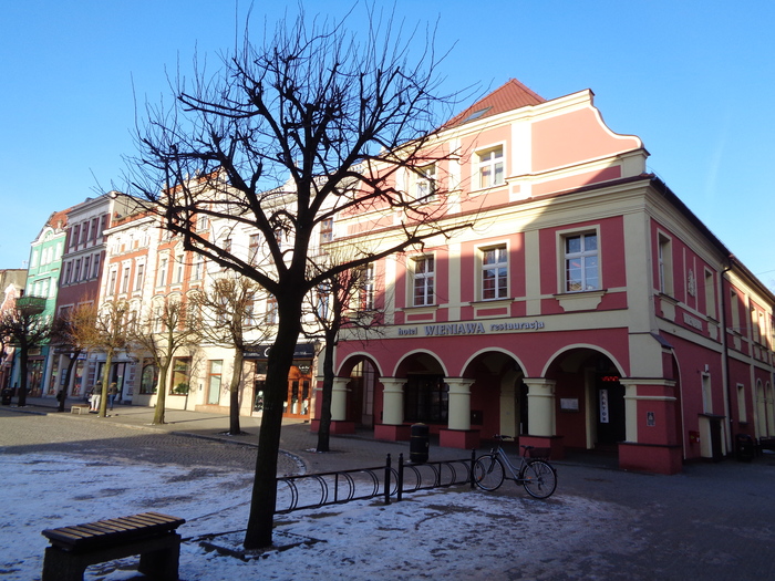 W Lesznie niewzruszony ratusz i restauracja „Wieniawa”, gdzie wreszcie dali coś gorącego do jedzenia.: