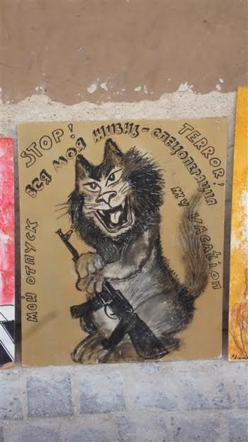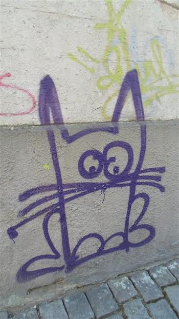 Wszędzie mnóstwo wizerunków kotów. Najczęściej sprayem.: