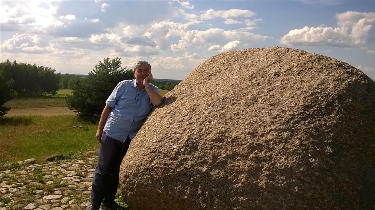 Wczoraj. Niedaleko Sierakowa, w Grobii jest Góra Głazów, 104 m n.p.m., czyli całkiem wysoko, z 25-ciotonowcem na szczycie. Jest infrastruktura, ławeczki, więc grono miejscowych panów (z rowerami, a jakże, bo przecież trzeba czymś wrócić do domu) akurat robiło flaszkę. Większość wyglądała zresztą, jak by już od rana poszukiwała swojej drugiej połówki. Ja zaś próbowałem zapozować.: