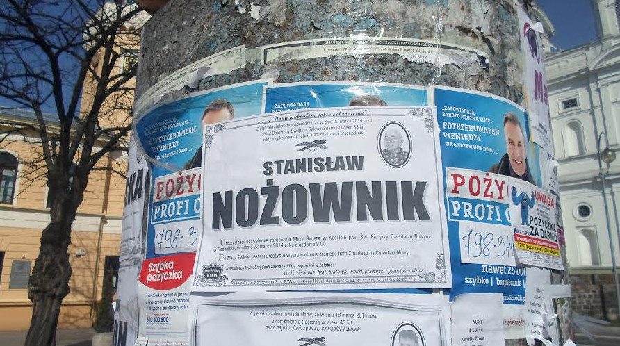 Na słupie ogłoszeniowym w Radomsku radość przeplata się z żałobą.