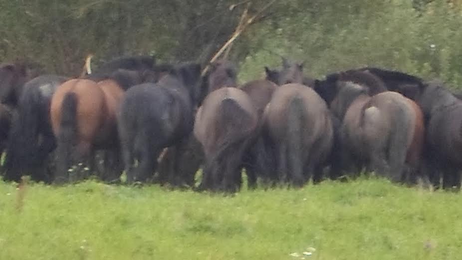 Ech, te cudowne bieszczadzkie konie! Tyle, że akurat dostały jeść i – nie były nami zainteresowane: