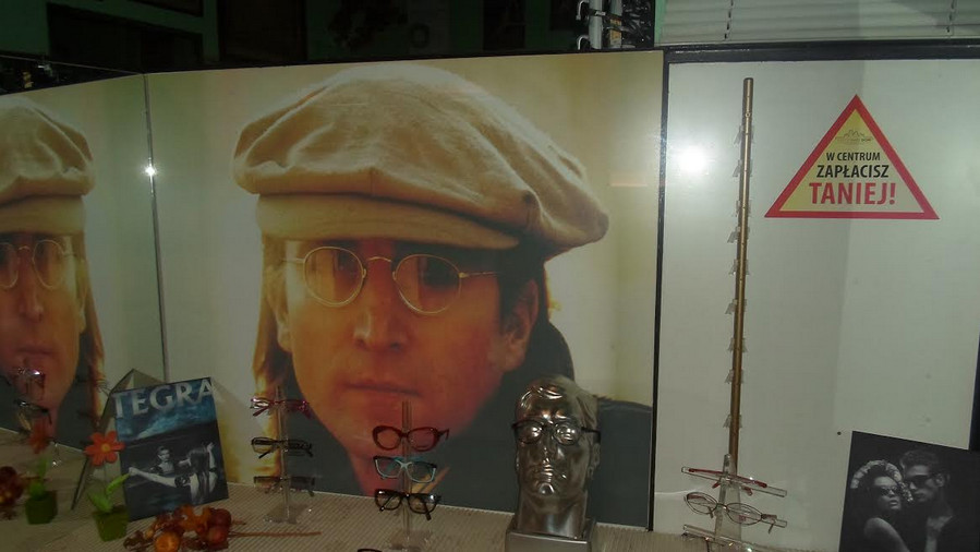 Proszę, niby skromny optyk z Kielc, a stać go, by jego usługi reklamował sam Beatles z wadą wzroku.