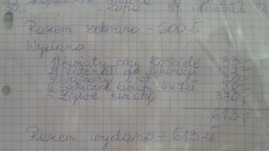 Kawałek dalej, w niewielkim wiejskim kościółku byliśmy świadkiem – bez żadnej przesady – cudu. Byliśmy w tylu sanktuariach, ale podobnej sensacji nie widzieliśmy nigdzie. Oto na tablicy ogłoszeń wisiała lista wpływów finansowych, jakie parafia pozyskała od wiernych i lista wydatków – co do złotówki. Podpisane to było nie przez księdza, lecz przez świecką administrację. Była to raczej biedna wioska i księdza, który toleruje u siebie podobne ekscesy, do bardziej biednej parafii już się pewnie przenieść nie dało: