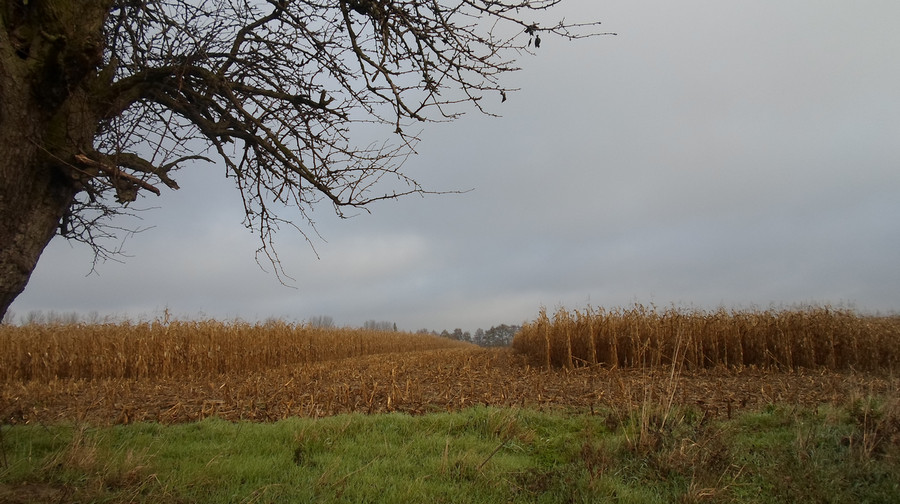 Objazd wokół Poznania. Uroczo prezentowały się słynne mgły listopadowe. Ale i tak najbardziej zachwycające pozostają nieskończone pola kukurydziane…