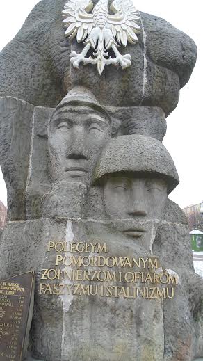 W Świdwinie pomnik, z którego wynika, że te ziemie wyzwolili (?) Chińczycy lub Mongołowie. Tylko dlaczego w czapkach z orzełkiem?: