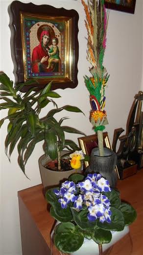 Dorota zainstalowała palmę kupioną niedawno na targu pod bazyliką bernardynów w Leżajsku. Starsze panie, podobno, chodziły, oglądały i strasznie wybrzydzały. W moich stronach jak już ktoś ma wydać dziesięć złotych…: