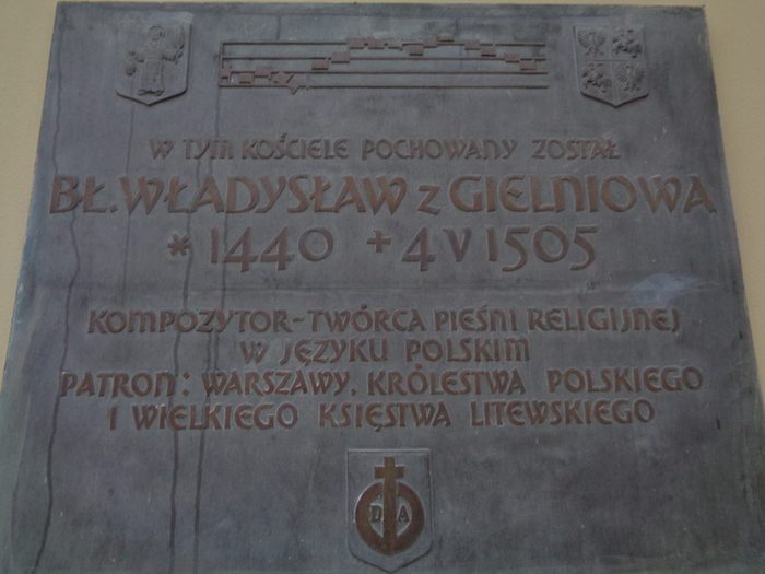 Krakowskie Przedmieście. Na kościele Św. Anny tablica ku czci Ładysława z Gielniowa. Ze trzy razy przejeżdżaliśmy przez Gielniów. Ładysław ma tam bardzo nowoczesny pomnik. Nigdy jakoś nie złożyło się, by przystanąć.: