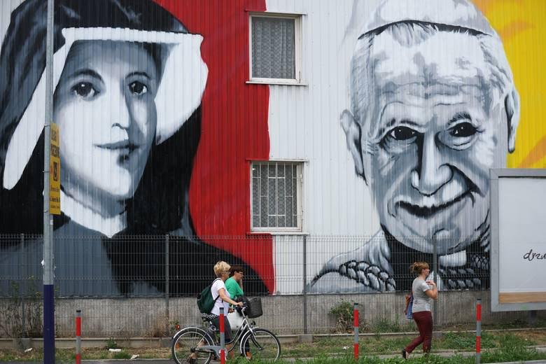 W Poznaniu pojawił się mural, dzięki któremu dowiedzieliśmy się nareszcie, jak siostra Faustyna i Jan Paweł wyglądali naprawdę (fot. Głos Wlkp.):
