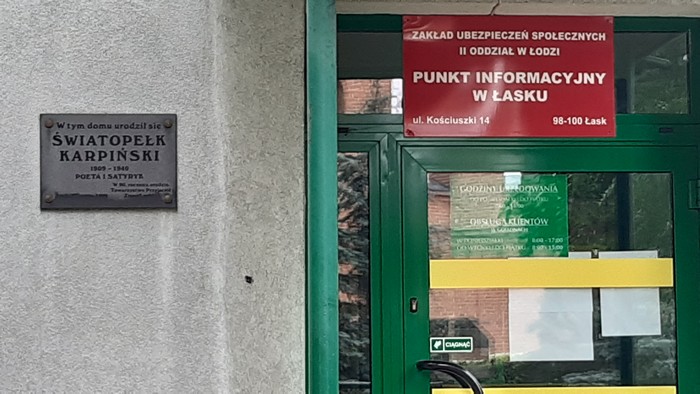 Łask. W domu poety Świętopełka Karpińskiego teraz siedziba ZUS-u, czyli wszyscy w domu.: