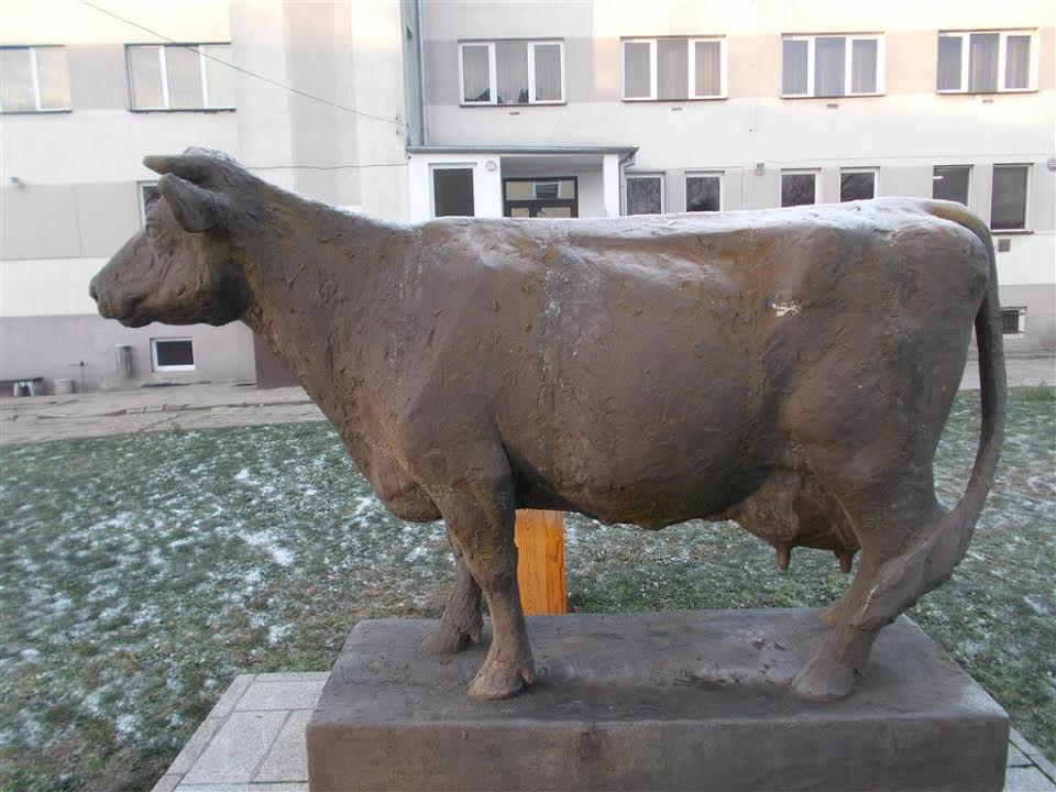 Poprzedni nocleg wypadł nam w czymś w rodzaju motelu w Starym Polu (między Malborkiem i Lęborkiem). Motel okazał się z lekka przysposobionym hotelem robotniczym po dawnym PGRze. Przed wejściem pomnik bohaterskiej krowy dojnej z 1978 roku. Krowa została sprowadzona z Holandii (za pożyczone zielone). Jak wszystko w epoce Gierka.: