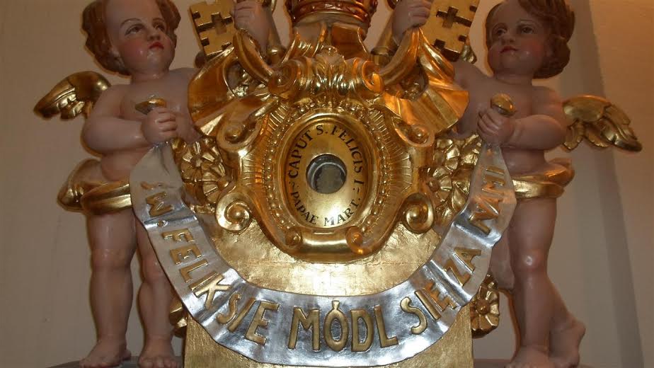 Zaszłości. Kodeń. W ołtarzu relikwiarz. Nie byle jaki, bo głowa świętego Feliksa! Przypomina mi się monolog starszego z braci Grabowskich o gaszeniu pożaru pod Nowym Targiem: „I przeszedł kierownik i się pyta – a on miał głowę! – kaj się pali? No to my mu mówimy, że tu!”: