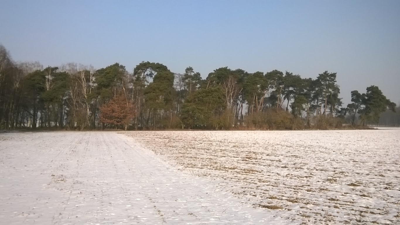 Z tej kępy drzew wypłoszyłem niechcący spore stado wczasujących tam dzików. Uciekły. Ja też.: