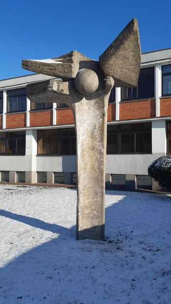 Po drodze do Zaniemyśla zawsze mijałem Centralny Ośrodek Badania Odmian Roślin Uprawnych z rzeźbą przed gmachem. I nie zatrzymywałem się aż do tej pory. Tylko – czy rzeźba przedstwia centralę, ośrodek, badanie, odmianę, roślinę czy uprawę? Oto pytanie!: