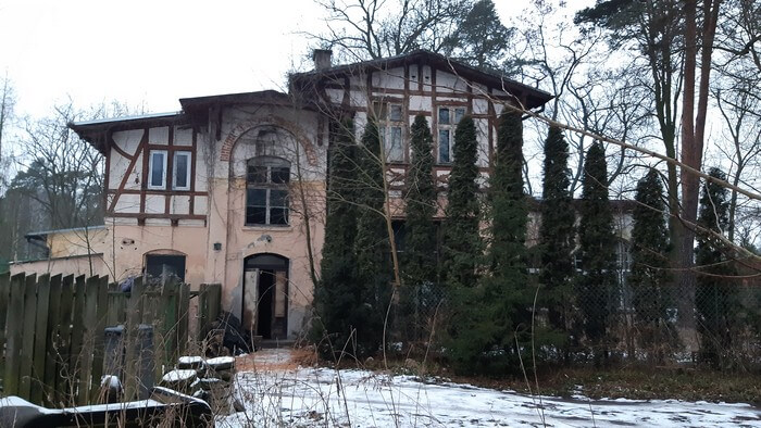 Puszczykowo o zmierzchu (wcześniej ostatnie egzaminy online). Miasto-ogród nad Wartą, poznańska Podkowa Leśna, w starej części podupadła, ale sosny takie jak kiedyś.: