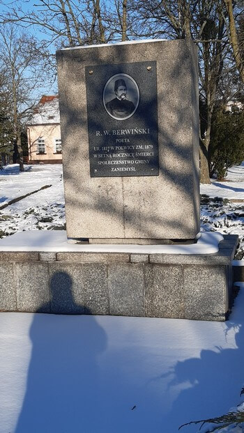 Z trasy. Zaniemyśl, 40 km na południe od Pozania. Tu słynne jezioro i pomnik poety Ryszarda B. Wikipedia „Na przełomie lat 1850–1851 lekarze stwierdzili u niego chorobę nerwową, której w latach następnych poddał się leczeniu. /…/ W 1855, podczas pobytu w Konstantynopolu, przystąpił do Kozaków Sułtańskich Sadyka Paszy, następnie od końca wojny krymskiej aż do 1871 służył w Drugim pułku dragonów osmańskich. W roku 1879 zmarł w nędzy i zapomnieniu”. Typowy życiorys mieszkańca Zaniemyśla.: