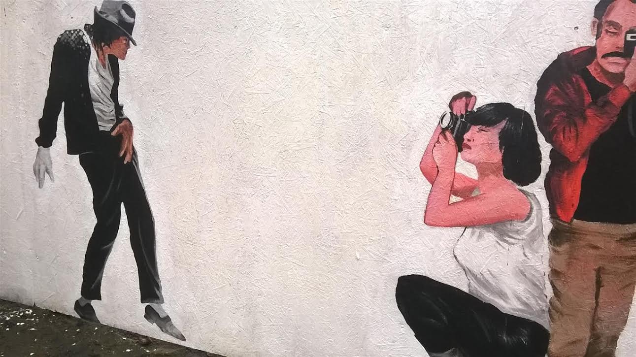 Na poznańskim Łazarzu (St. Lazare) pstryknąłem mural (choć na płycie paździerzowej. Materiał pasuje do dzielnicy. Gest chwytania się w miejscach publicznych za genitalia, który Michael Jackson spopularyzował na całym świecie, jest na Łazarzu przyjęty, a nawet dobrze widziany.: