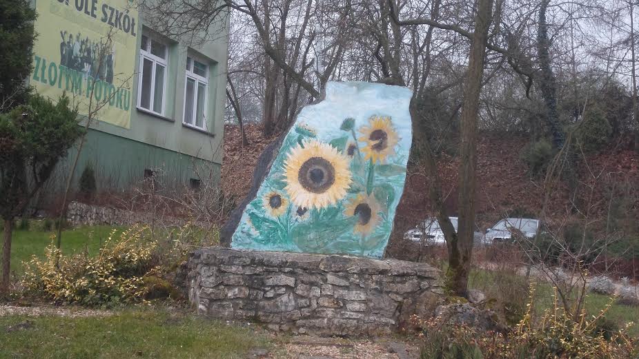 Bezinteresowne piękno: słoneczniki przed szkołą rolniczą w Złotym Potoku. Van Gogh by się pociął: